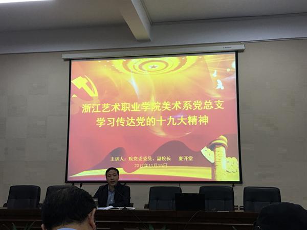 报告最后,夏开堂就开展十九大学习活动提出了几点意见。一是学习十九大精神是当前首要任务和头等大事,学院即将下发十九大学习实施方案,党总支要制定计划、落实学习,把贯彻学习十九大精神放在首要位置;二是要系统全面地把握十九大精神,通过精读十九大原文、召开座谈会的形式进行学习体会的交流探讨;三是要切实使用十九大精神和思想武装头脑,指导实践,推进工作;四是要切实紧密联系工作实际,结合“两学一做”常态化制度化学习教育,服务地方、服务社会,创好农村文化礼堂建设。他表示,作为艺术类院校,我们要积极创作艺术作品,讴歌党的十八大以来取得的方方面面的成就,党政领导要发挥引领作用,指导师生进行创作,通过作品宣传和贯彻十九大精神,配合省文化厅的部署要求,完成文化浙江和文化强省的战略任务。