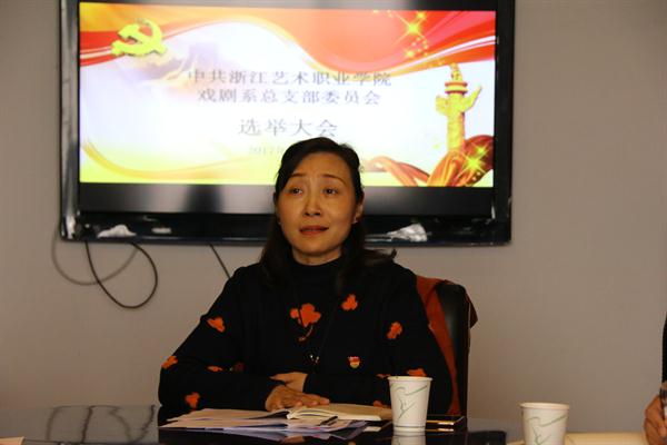 黄杭娟作专题讲话。她表示,系部要进一步优化基层党组织领导班子结构,进一步统一思想、凝心聚力,为下一步任务做好准备。她强调,新一届总支部委员要在推进基层党组织建设全面进步、全面过硬,推进基层党组织建设和专业建设、文化建设紧密结合,推进“两学一做”学习教育,履行党员四个合格,推进戏剧艺术教育的科学发展上面下功夫。她还提出三点要求:一要按照加强新时代党的建设要求,认真组织学习贯彻党的十九大精神;二要推动党员学习、遵从《党章》;三要自觉干在实处谋新篇。王涛宣读了学院党委的批复。许瑛简要介绍筹备工作情况并作总支工作报告。会议选举产生由支涛、许瑛、梅跃进、杨晓浤、颉顺虎组成的新一届戏剧系总支部委员会。