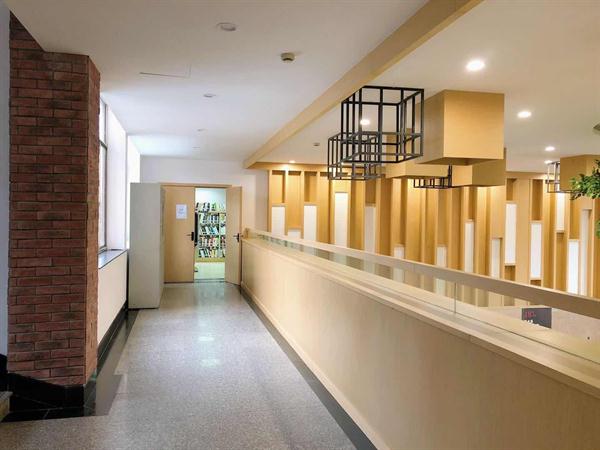 步入图书馆大门,新布局很小清新,色调柔和,大厅西角落多了一个小咖啡座。中心区的绿萝为大厅增添了勃勃生机。一定要关注大门左侧的电子屏哦,那里连着超星图书馆,学校已经付费,扫码就可以直接下载电子书。还有更方便的,图书馆老师说,超星移动图书馆只需绑定校园一卡通,扫码也可下载免费的电子书。右侧报刊新书阅览室已经改造完成,新书可以外借,报刊仅供现场阅览。
