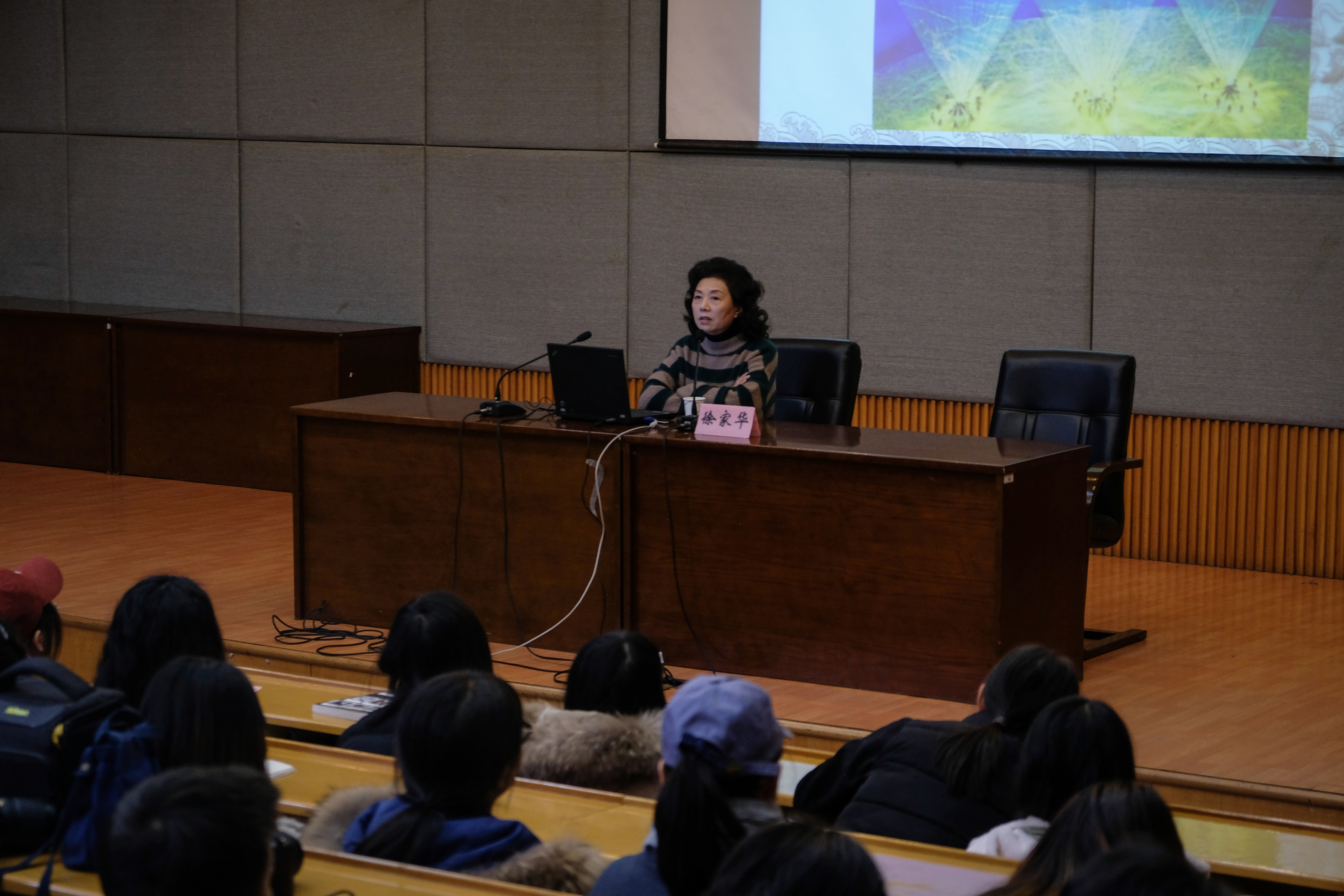 12月19日,上海戏剧学院教授、博士生导师、著名人物造型设计专家徐家华教授应邀到访浙江艺术职业学院美术系,在图信中心报告厅为美术系师生作题为《以时尚的眼光看传统》讲座。