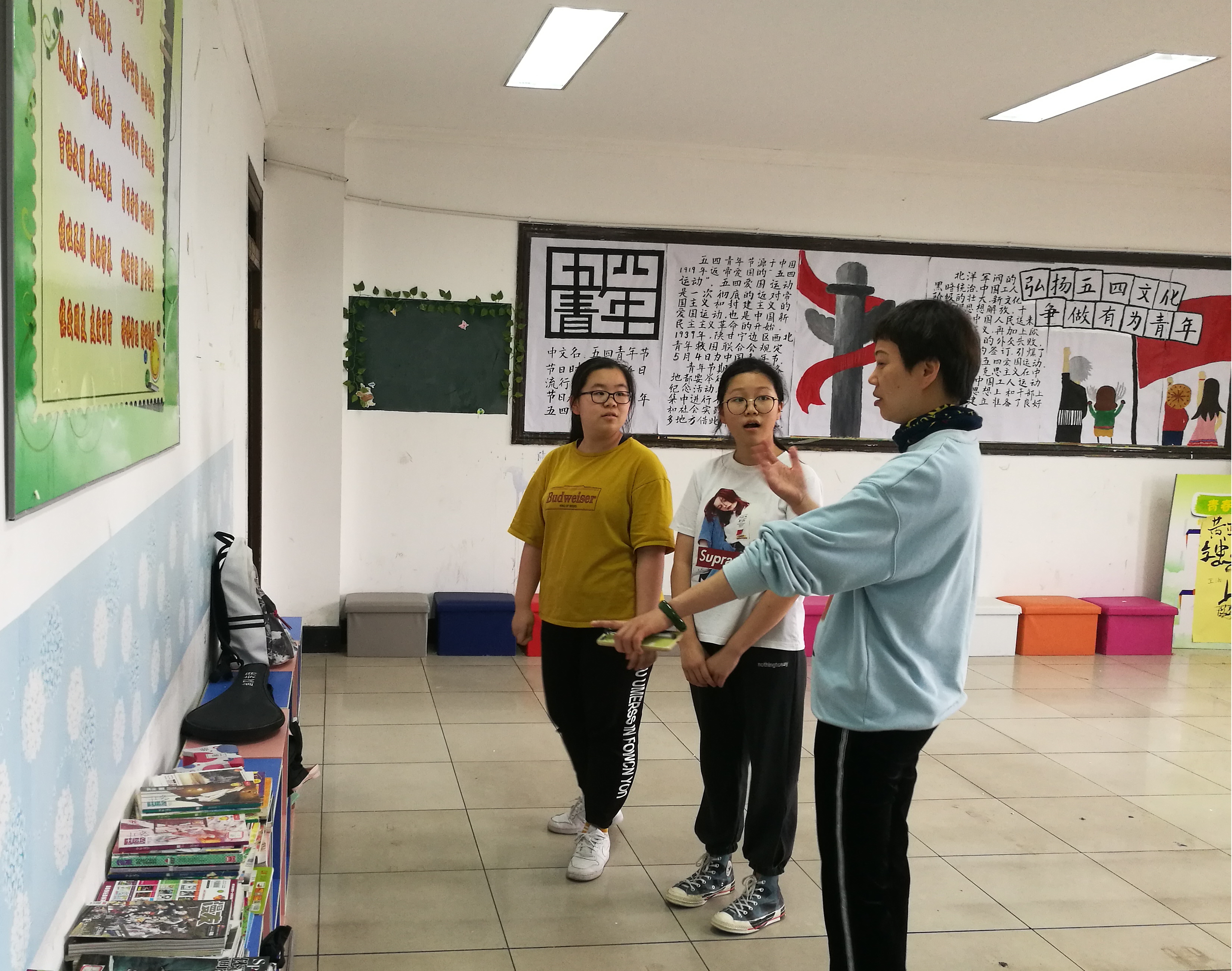 同时,在评比过程当中,最令人记忆深刻的就是班级中的小小讲解员,他们用生动的语言、优美的音乐和惊喜的表演把评委们带入到他们精心美化后的“殿堂”。17中国舞班的钱博洋同学,从踏入教室的第一步便开始娓娓道来,向评委们讲述“知感恩,与爱同行”浓厚的感恩情怀,介绍了每位同学把自己最亲切的感恩语言,宛如一片片树叶落在熠熠生辉的墙上,让每个人学会感恩身边父母、老师、同学等最亲的人。当评委们踏入18音乐班教室门口的那一刻,引人入胜的便是一声声《我和我的祖国》的钢琴声,在悦耳动听的琴声中欣赏同学们制作的弘扬“五四”运动精神,争做新时代有为青年的板报。跨入18越剧(3+4)班的教室,映入眼帘的便是一张张欢迎的笑脸,她们用朴实的言辞,亲切的小故事来介绍感恩亲切的身边人、感恩伟大的祖国。15中国舞班为评委们准备了一份精美的爱心小卡片,瞬间融化了老师们的心;17音乐班的小同学们,在即将结束之时唱起了《我的祖国》的小合唱,这样的表演更有一番滋味;15音乐班的同学们拿着一面面小红旗列队欢迎,洋溢着对祖国的热爱。在整个评比的过程中,无时无刻都能感受到同学们的那份挚爱与热情,青春与朝气。