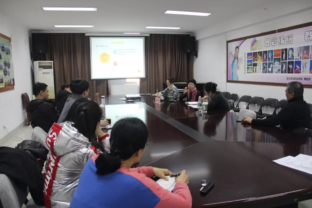 周萍为舞蹈系师生作《中国民间舞教学编排法》指导讲座。她从中国民间舞自身的舞蹈特性和教学规律将前辈们多年实践中积累的优秀教学组合的内部做了详细的分析和归纳,提炼出了单一类、复合类、综合类、竞赛类四个教学阶段的组合编排原则和具体编排方法,并从编排方法的使用及对编排原则的体现上对所列举的组合范例进行了详尽分析,希望通过课程学习,学生将民间舞课堂知识融会贯通,掌握备课能力达到举一反三的效果。