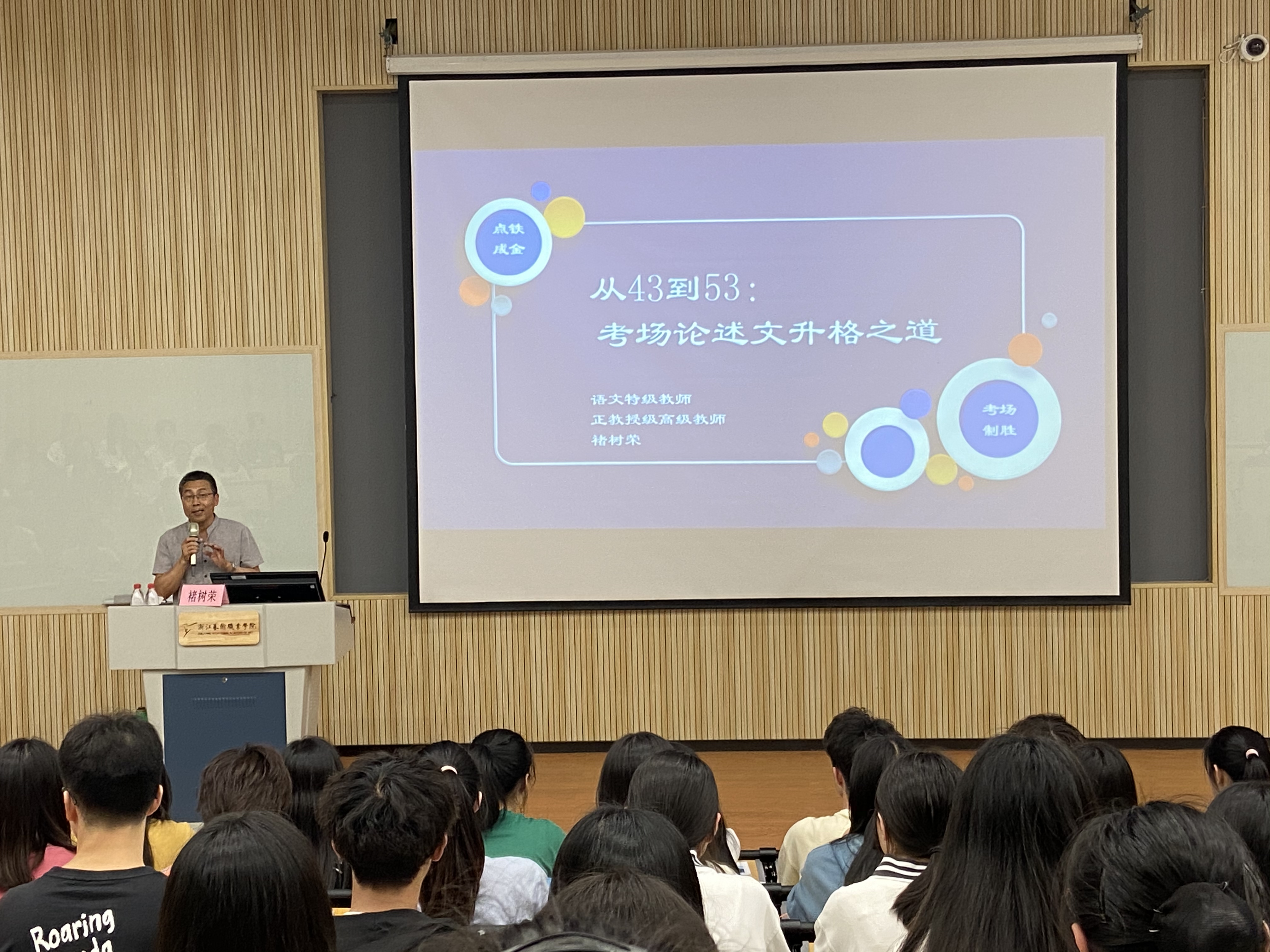 5月12日下午,我校基础教学部邀请浙江省高中语文特级教师、二级教授褚树荣,为中专段学生就高考论述文写作开展专题讲座。