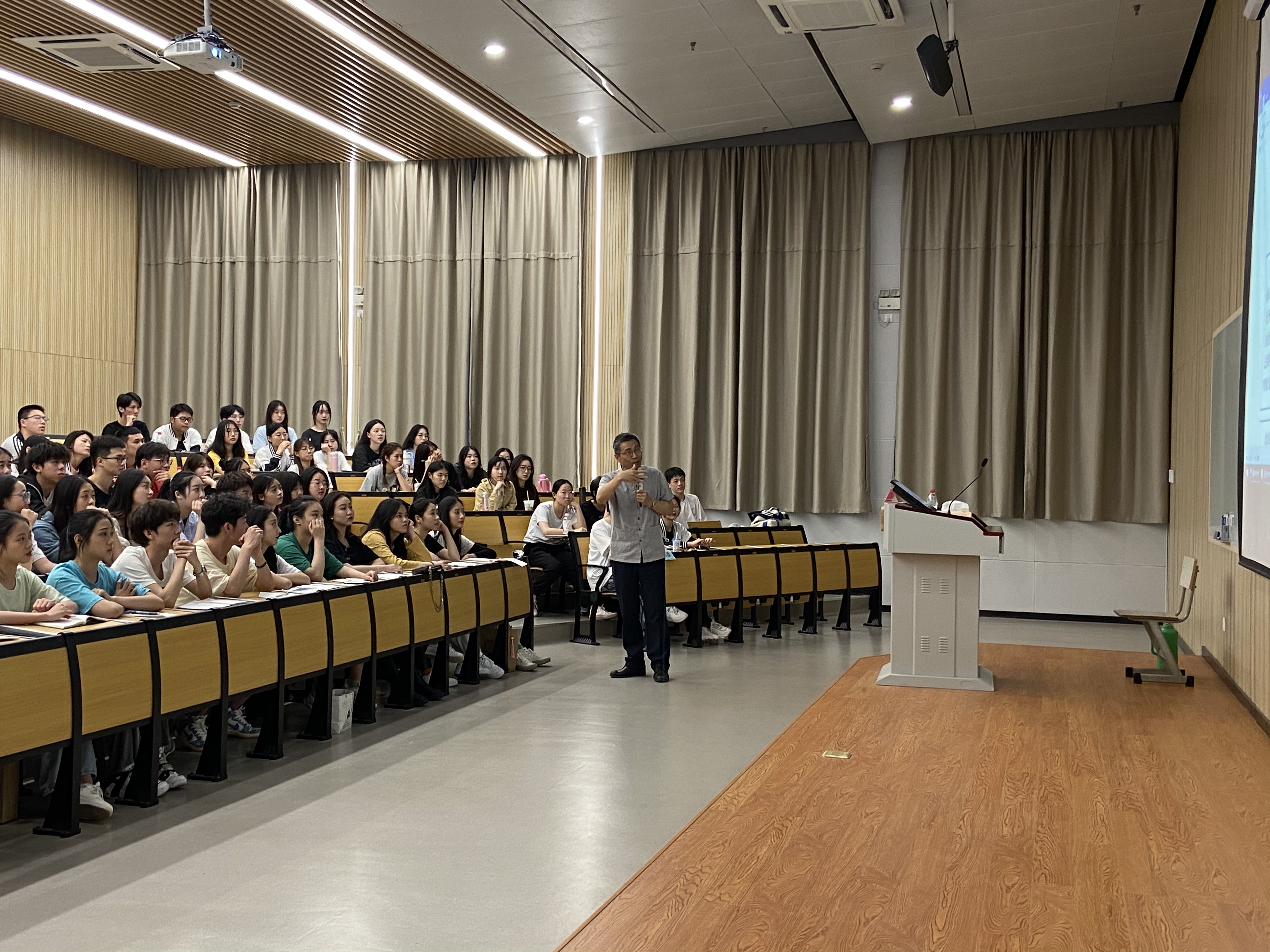 同学们时而奋笔摘录,时而抬头认真聆听,时而参与互动,学习气氛非常浓郁。褚老师亲切温和、精辟独到的讲解给大家留下了深刻的印象。尤其是再过20多天就要参加高考的高三学生,他们纷纷表示今天的讲座收获满满,“褚老师简直就是一场‘及时雨’啊,对我的考场作文太有帮助了!”