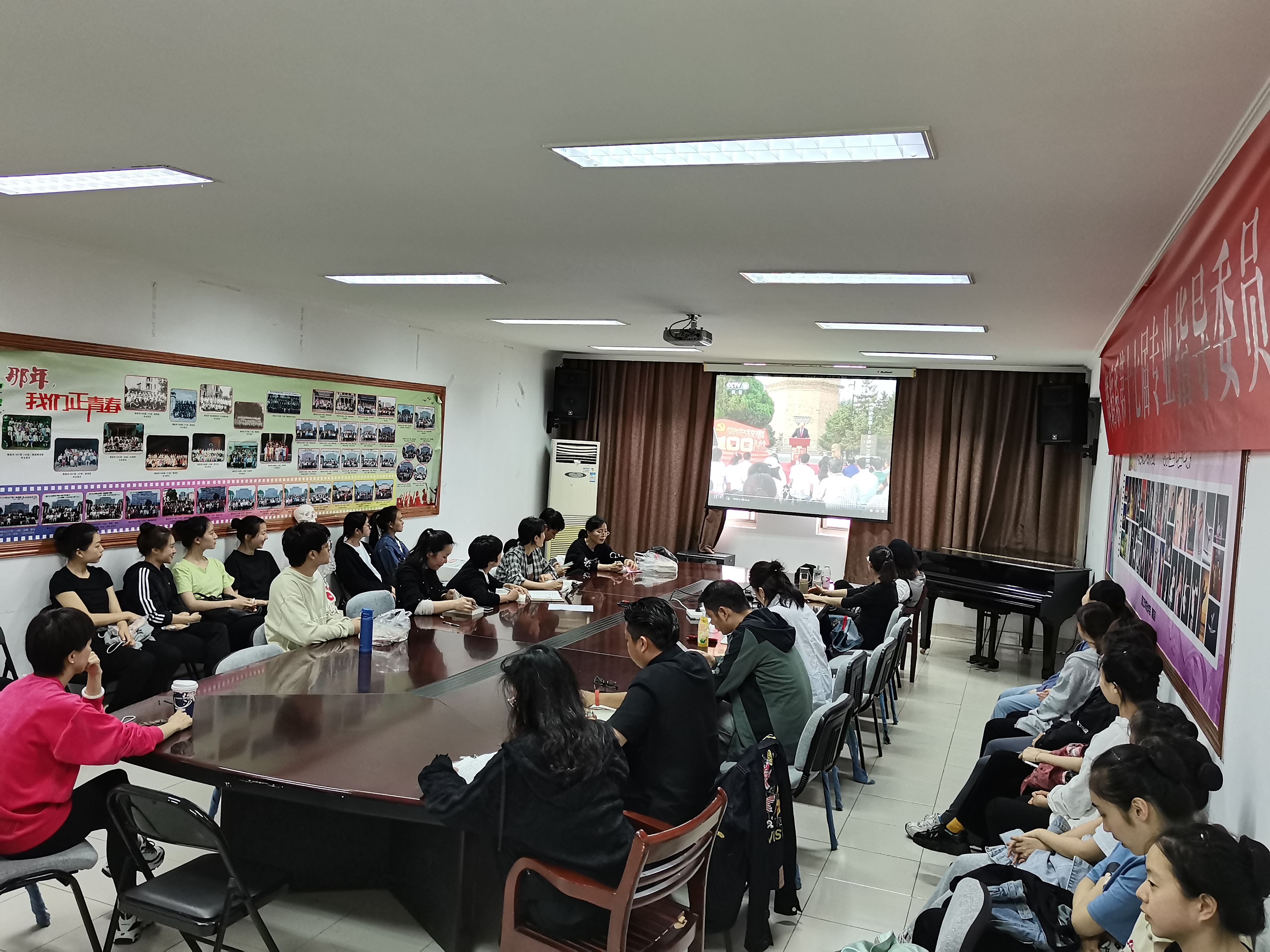 4月28日,舞蹈系举行了第四次集中学习党史活动,舞蹈系领导班子、教师党员、教研室主任、专业带头人、师生入党积极分子共同收看由中共中央组织部党员教育中心、中央党史研究室宣传教育局、中央电视台科教频道联合制作的特别节目《党史故事100讲》第6、7讲——《瓦窑决策 联合抗日》《西安事变 石破天惊》。