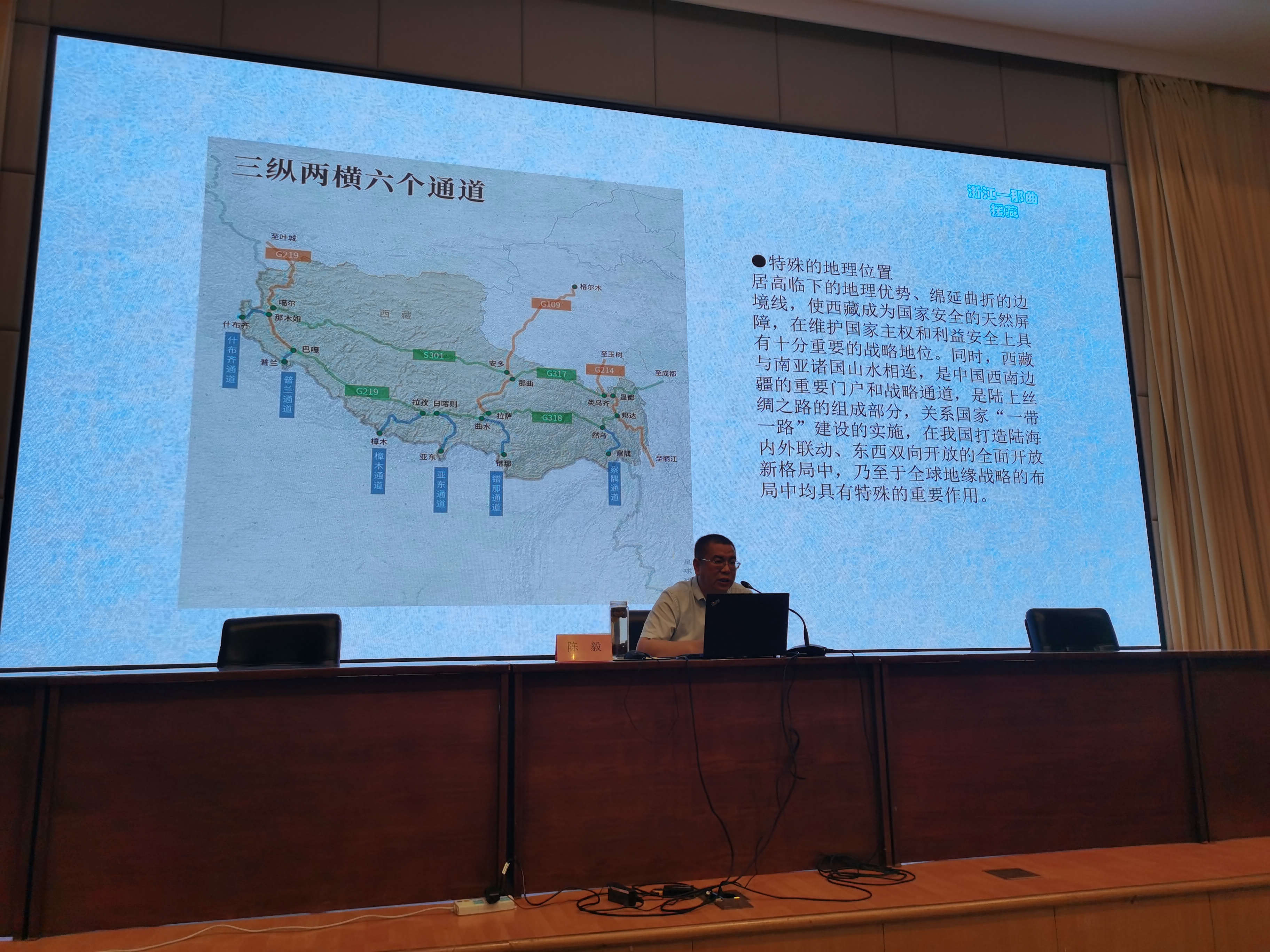 会议特邀社会科学部党支部书记、副主任陈毅为后勤公司员工上了《一名援藏干部眼中的“援藏”》主题党课。他结合自身经历分享了援藏心得、传递援藏精神。讲座中,陈毅介绍了西藏的基本概况,详细阐释了不同时期中国共产党对西藏发展的战略方针,通过人民解放军十八军艰苦奋斗的事迹展现了从“老西藏精神”到“两路精神”再到新时代的“援藏精神”。习总书记曾说在雪域高原最稀缺的是氧气,最宝贵的是精神。援藏的舍小家为大家、舍小我成大我、不计个人得失的精神在工作中具有深远的指导意义。