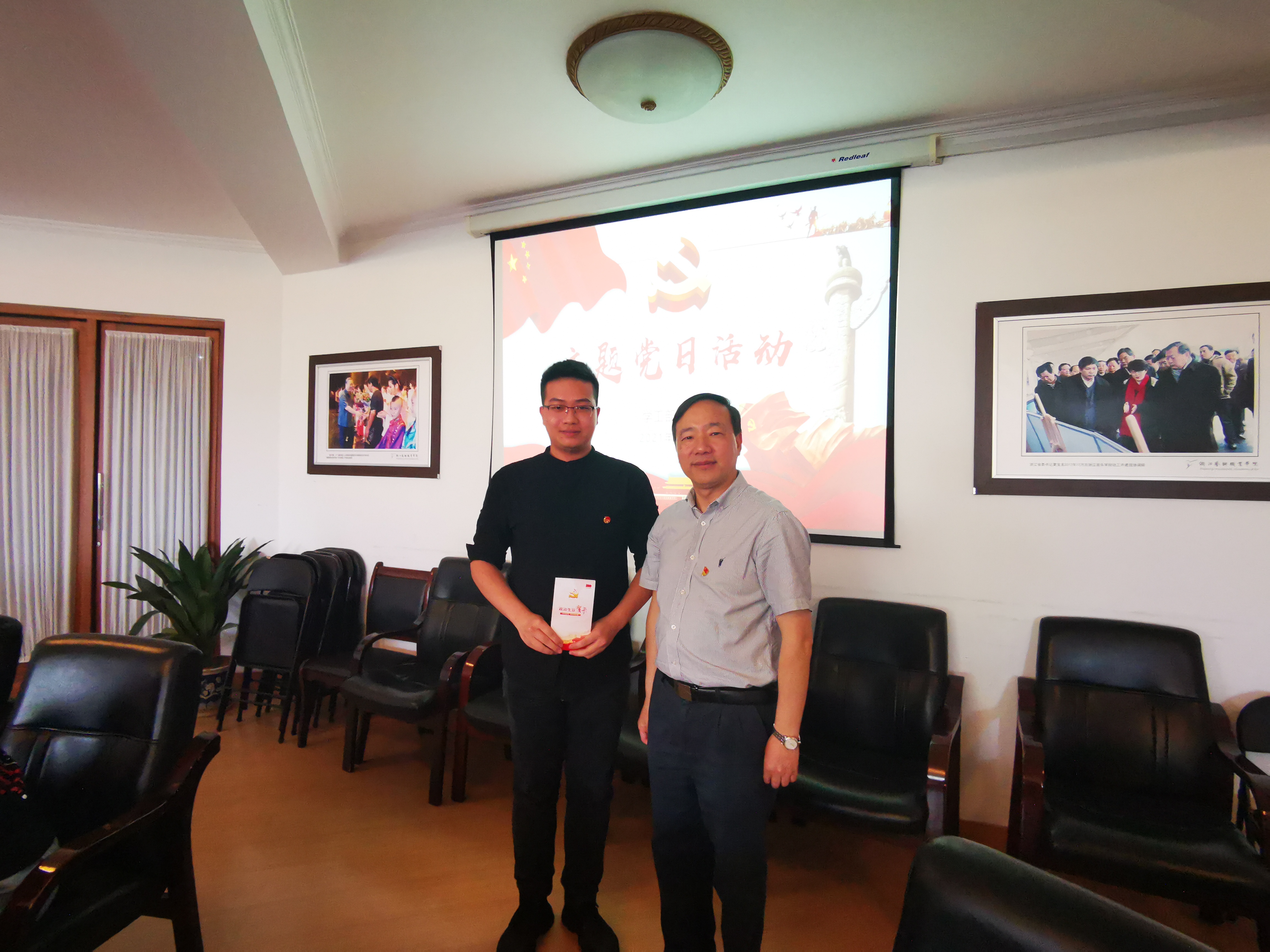 上课之余,全体党员为5月政治生日的4位党员集体过生日,夏开堂为党员同志送上了“政治生日”贺卡和“生日”寄语。4位党员分别分享了自己入党日的重大党史事件,并结合自身实际工作,分享了此次党课的学习体会。大家表示要传承、发扬“长征精神”,汲取长征精神的惊人毅力、坚定信念、吃苦耐劳的决心和大无畏的精神,以强烈的事业心和责任感努力做好学生工作,为浙艺发展贡献自己的一份力量。
