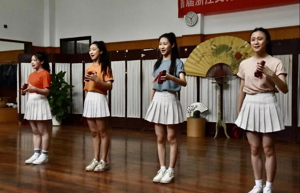 7月3日上午,在我校2号楼105教室进行了戏剧系2019级表演艺术(五年一贯制)班曲艺表演课程期末考试。特邀江苏省文化馆研究馆员、国家一级演员倪明,浙江省曲艺家协会副主席、浙江省曲协秘书长唐爱超,2013年和2017年两次荣获文化部政府最高奖“群星奖”、四次荣获“解放军文艺奖”金奖获得者沈莹来到考试现场,为表演艺术专业曲艺表演课程把脉。表演艺术专业教学团队的所有教师都到现场观看学生考试。