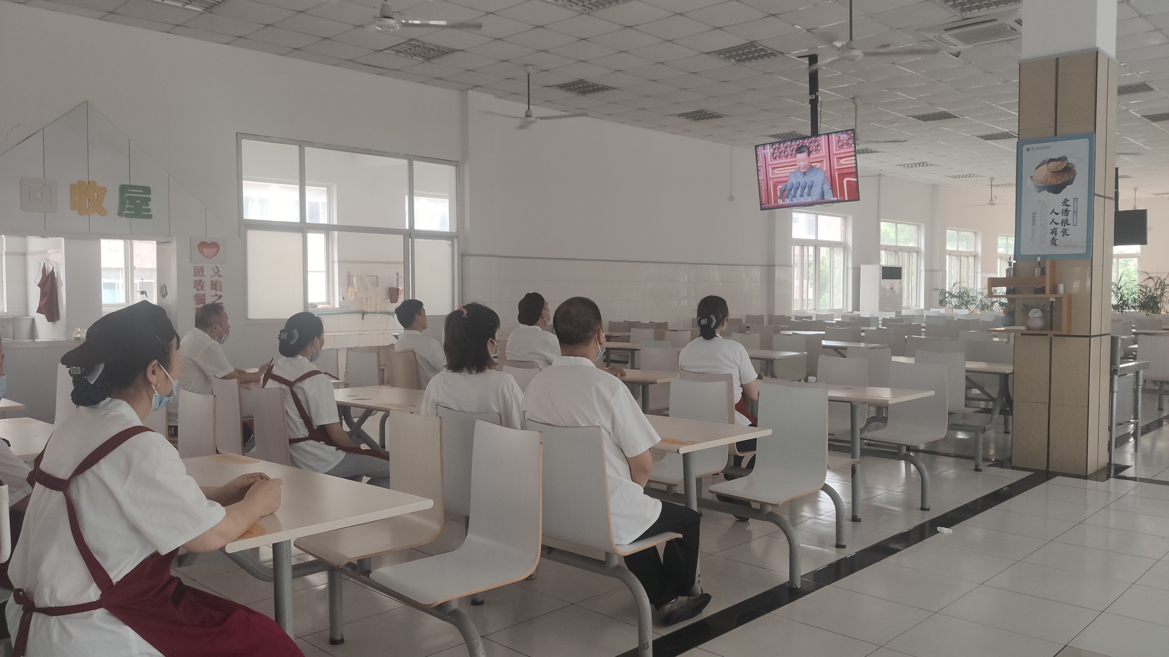 7月1日上午8点,庆祝中国共产党成立100周年大会在北京天安门广场隆重举行,总务处全体教职工收看了视频直播。