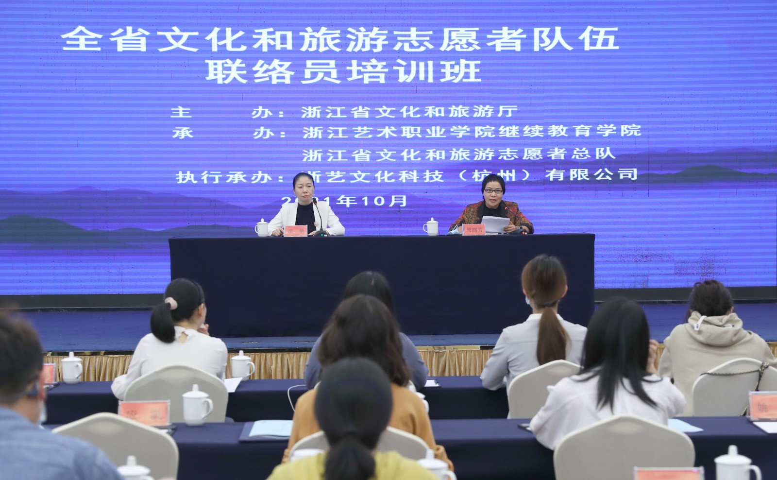 10月11日,由浙江省文化和旅游厅主办,浙江艺术职业学院承办的2021全省文化和旅游志愿者队伍联络员培训班在杭州开班。来自全省各地市近100名文旅志愿者队伍联络员参加培训。浙江艺术职业学院继续教育学院院长周丽芳出席开班仪式,继续教育学院副院长沈艳主持开班仪式。