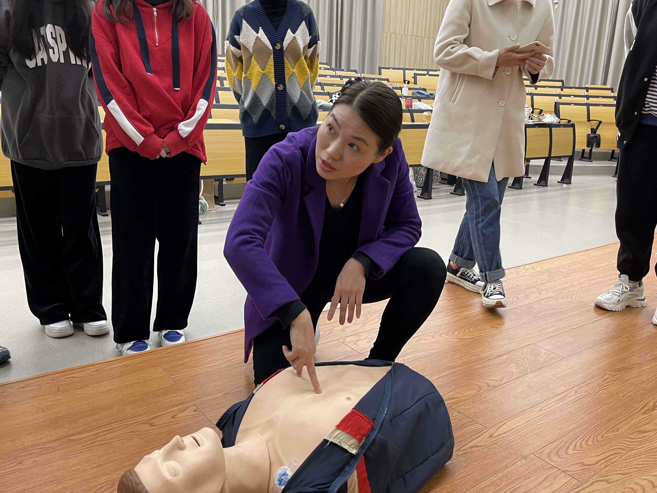 为让同学们快速掌握意外伤害与急救知识,廖震与杭州市儿童医院护士邓芸芸为大家进行《儿童常见的意外伤害与急救》的实操培训。廖震通过直观的数字介绍我国急救的情况,让同学们意识到急救实际操作的重要性,并在实操中认真学习规范急救措施。学前教育专业师生在指导下逐一进行了心肺复苏和海姆立克急救法的训练。