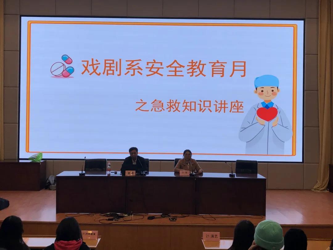 为更好普及急救知识,使学生面对意外情况能做出正确的处理、增强应急救护能力,11月12日晚,戏剧系在图信报告厅举行安全教育月之急救知识专题讲座,邀请中国儿童青少年健康促进工作委员会理事、杭州市儿童医院医教部副主任廖震主任医师作“急救知识培训”。戏剧系党总支专职副书记许瑛主持,戏剧系200余名学生参加。