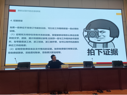 金文超律师以“大学生常见法律问题分析”为主题,以大学生身边鲜活生动的案件进一步引导同学们树立规则意识、法律意识,分别以“小心借贷的‘坑’”“恋爱同居那些事儿”“兼职打工要注意”三块面以案说法,兼具学理性和故事性,给同学们清晰地界定“什么可以做、什么不能做”,明确自身行为界限,从而起到预防违法犯罪、减少矛盾纠纷的效果,彰显司法力量与法律温度。