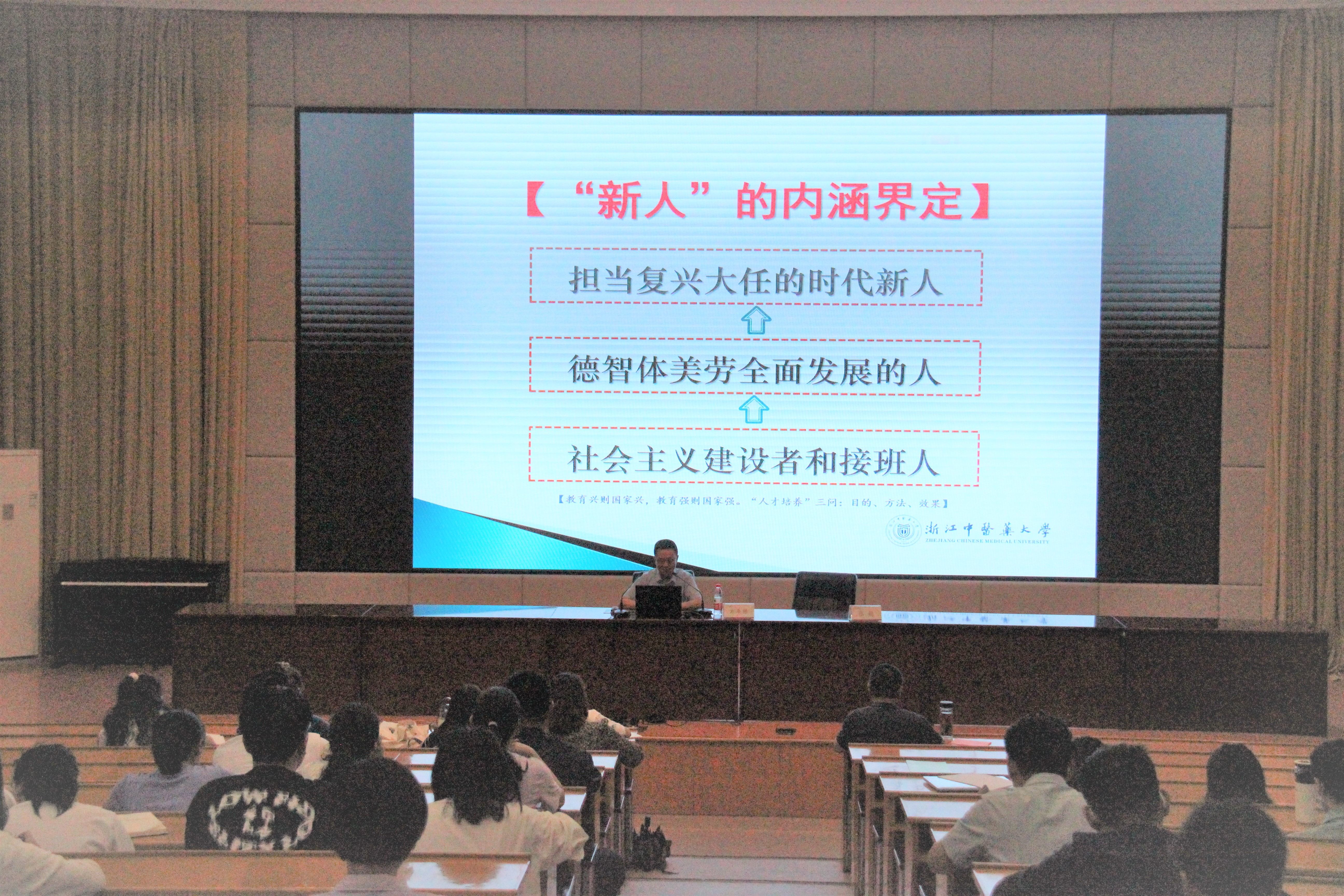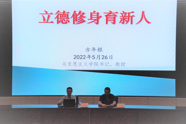 5月26日上午,马克思主义学院会同校党委学生工作部、人事处在校图信中心报告厅组织召开“立德修身育新人”专题讲座。讲座由浙江中医药大学马克思主义学院党总支书记方年根教授讲授,我校马克思主义学院全体思政教师、全体辅导员、学院新进教师以及部分教学院部党组织负责人、班主任近70余名教师参加本次讲座,讲座由马克思主义学院直属党支部书记陈毅主持。