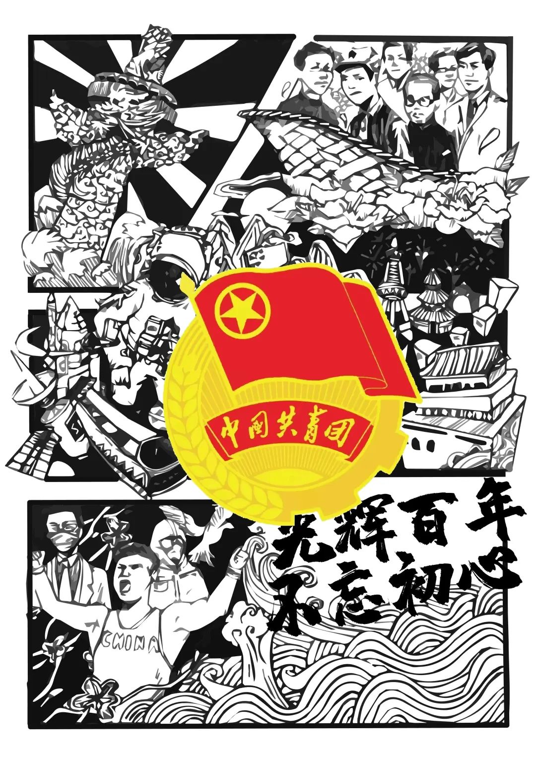 今年是中国共产主义青年团建团100周年,也是党的二十大召开之年。回首百年历程,纵览神州巨变,几多感慨,几多豪迈。为弘扬共青团精神,进一步增强广大团员青年作为共青团员的光荣感、责任感和使命感,设计学院在五四青年节前夕开展红色观影、主题团课、主题绘画等系列活动,充分展现青年团员的良好精神风貌,砥砺奋进、开拓进取,以青春之我,创造青春之中国。