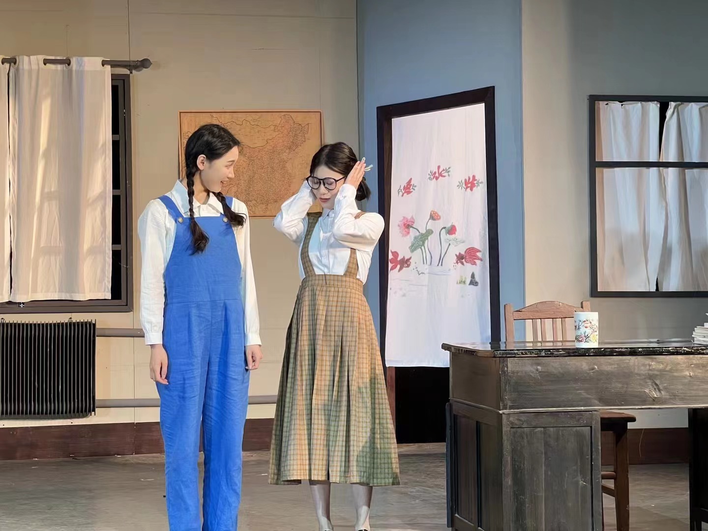 刘忠虎表示,要感谢参与这场戏的所有人,尤其要感谢演出的十二位同学,十二个人撑起了一场大戏,使人浮想联翩,不禁想起了那个激情的时代。感谢同学们非常好地刻画出了每一个人物;感谢导演曾乐老师和同学们对节奏上的把握,好几个片段的节奏处理都让人潸然泪下;感谢台词指导施杳杳老师,同学们学习的时间并不长,但台词能够做到生活、清晰,很让人惊讶。他建议,窗外景象需要变化、收音机的使用、对于抹布的处理等等。