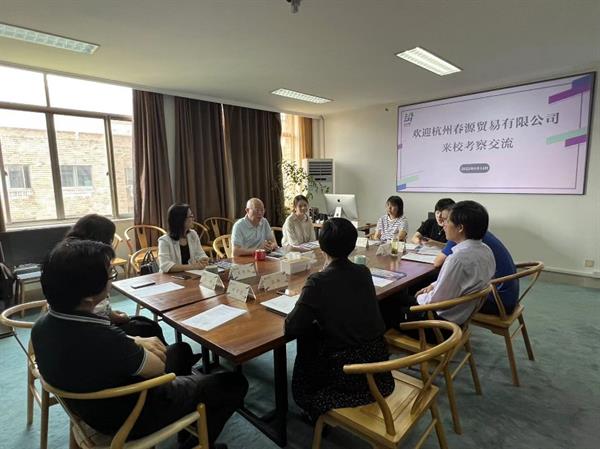 近日,杭州春源贸易有限公司董事长王志利一行到访设计学院考察交流,洽谈合作事宜。校党委委员、纪委书记徐芳,设计学院党总支书记汪琳,设计学院党总支专职副书记顾才铭,舞台艺术设计与制作专业教研室主任叶文志和部分专业教师参加座谈会。