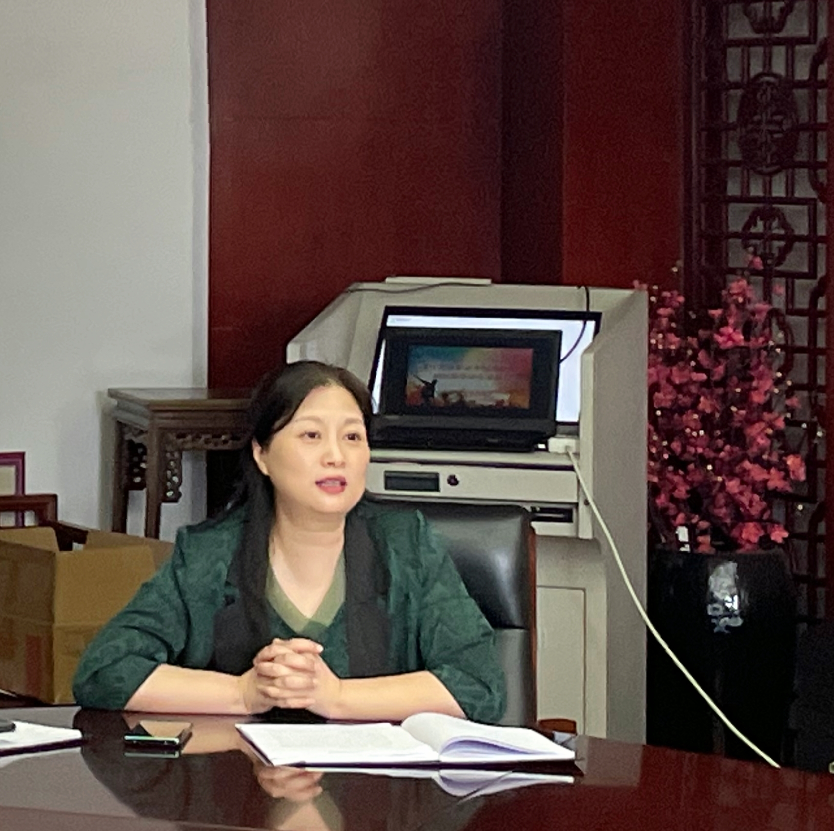 交流欢送会在三楼会议室举行。会上,戏曲学院党总支书记、副院长谢青真情致辞,对毕业生顺利完成学业表示热烈祝贺,与毕业生共同回忆昔日校园生活、社会实践的点滴,叮嘱勉励同学们努力通过自己所学、所践来实现自己的人生价值和梦想,坚守传统文化的传承与发展,把老师们的殷切希望和谆谆教诲化作今后不断前行的动力,衷心祝福同学们在未来的道路上脚踏实地、直面挑战,实现舞台梦想,书写人生最美的诗篇。