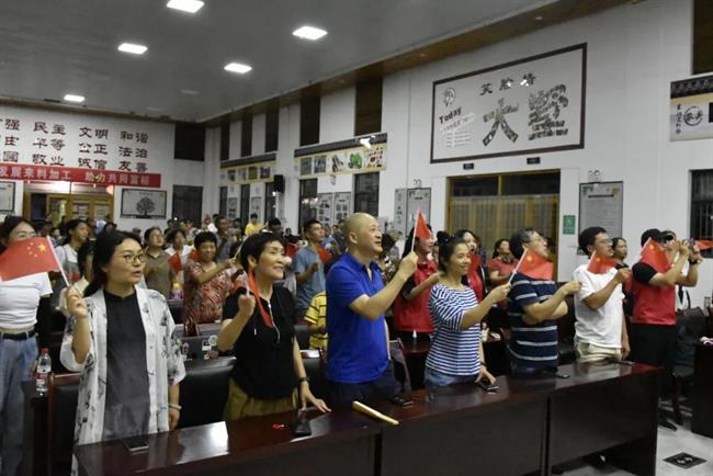 现场进行了“浙艺青年说”理论宣讲,在大墅村留下了浙艺学子坚定有力的青春之声。全体演员们与村民们齐唱《没有共产党就没有新中国》,用歌声表达对党的无限热爱,对祖国的美好祝愿。