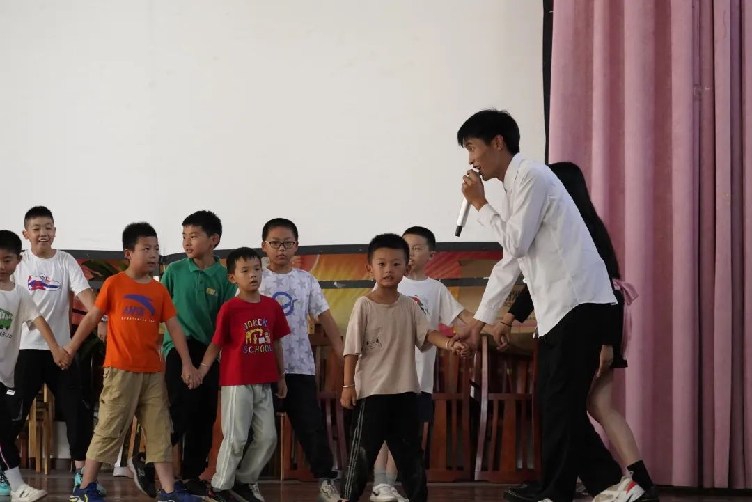 队员们在和孩子们打成一片之后开始紧锣密鼓的筹备着汇报演出,演出共10个节目,在大墅村文化大礼堂举行。支教组的成员们齐上阵唱歌、跳舞、诗朗诵……节目精彩纷呈,引人入胜。