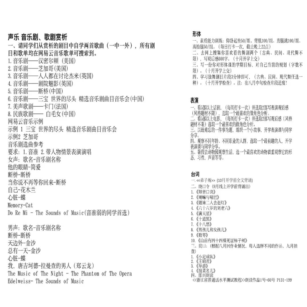 夏令营在各课程教师布置暑假作业中紧锣密鼓地开启了。8月1日,我院戏剧表演中专教研室组建了声乐、台词、形体、表演四个教学群,每个群都由主课教师负责,开展每天打卡、一周交流,以便有针对性地解决同学们的问题。对于同学们提出的问题,老师们及时解答,严格做到“有问必答”。8月13日、20日借助腾讯会议分别进行了两次暑期作业阶段性线上检测,对前一阶段的教学成果进行检验,同时根据本次检验结果制定下一阶段的教学计划。
