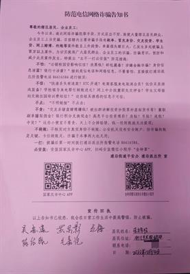 诈骗手法千变万化,但万变不离其宗。下面有几条小口诀帮助大家在日常生活中防范电信网络诈骗:1.未知链接不点击;2.陌生来电不轻信;3.个人信息不透露;4.涉及钱财要小心;5.遇事冷静去报警。