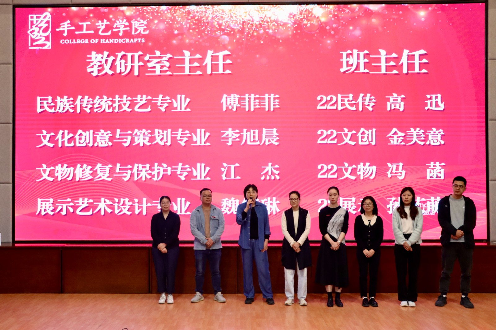 各教研室主任与班主任们上台与新生们见面,并寄语新生们志存高远,怀抱梦想,脚踏实地,刻苦钻研,成为专业扎实、本领过硬的手艺人。