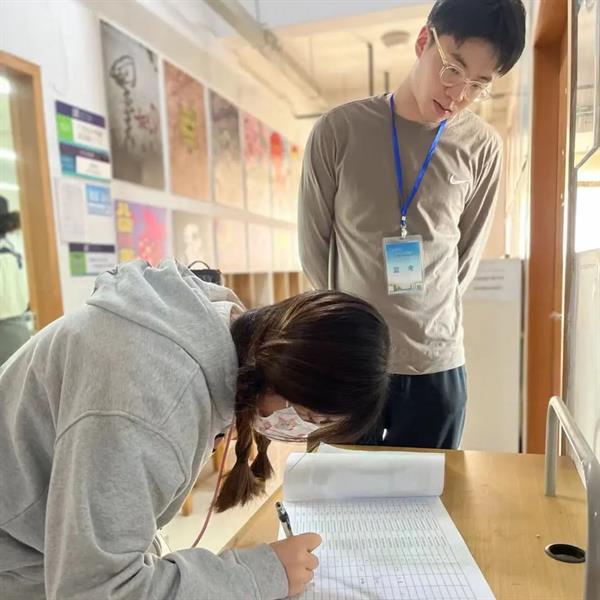 学生排队测温、签到,严格按照疫情防控要求进入考场