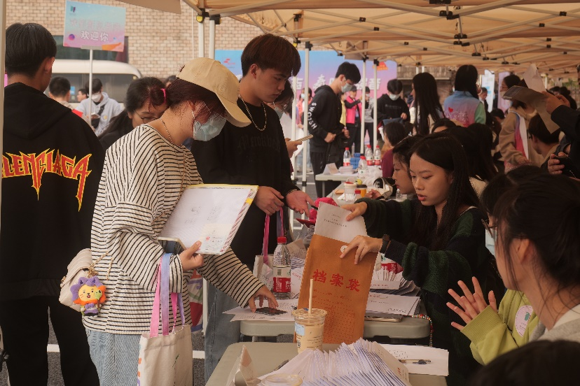 同学们前往“立志园”、“立业园”扫码办理入住手续,领取“新家”钥匙。