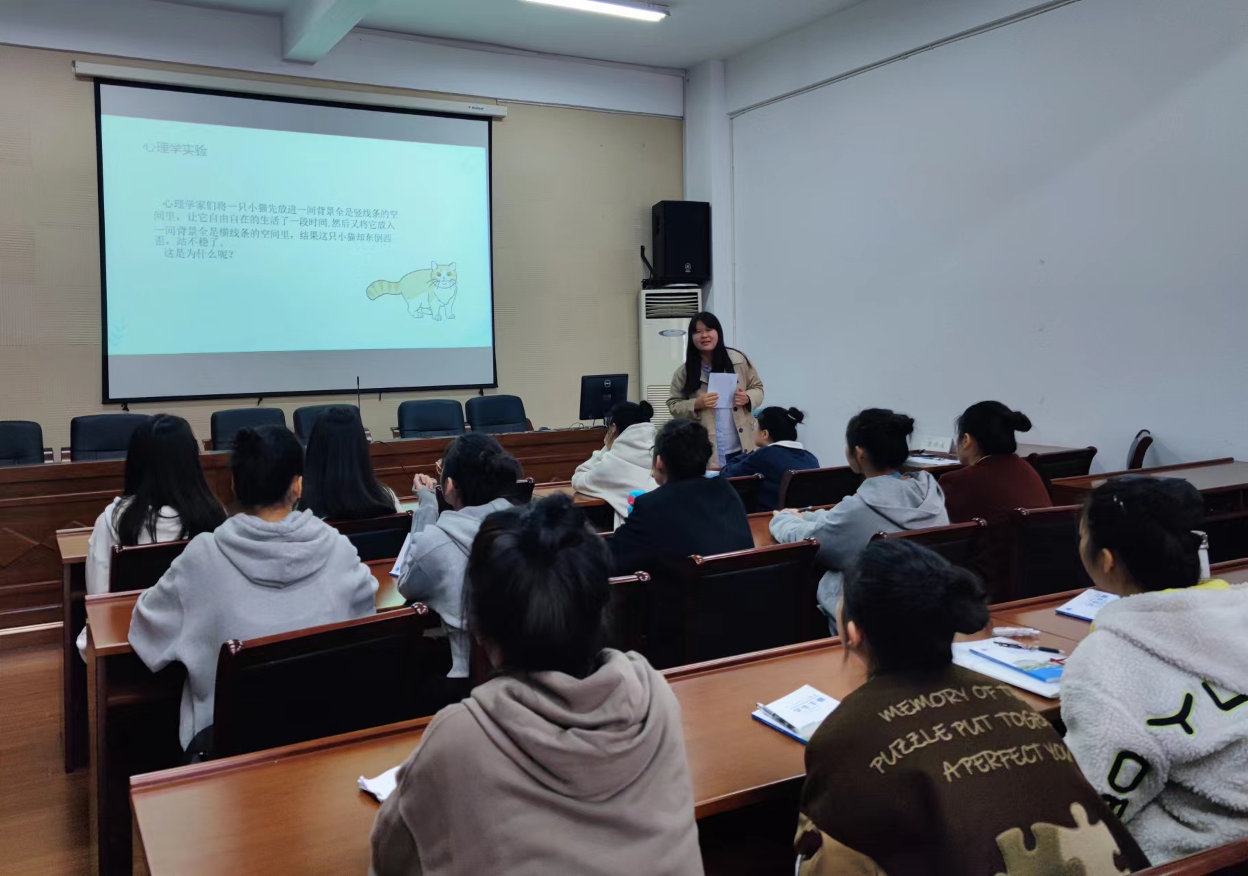 钱玉玲为新生们上了一堂别开生面的心理健康课,介绍了学校心理健康教育中心举办的系列活动和咨询预约方式。她用有趣的热身活动和生动形象的讲解,向新生们传递心理健康的专业知识,帮助新生学会构建“安全感”、找到学习动力、学会沟通与换位思考等。