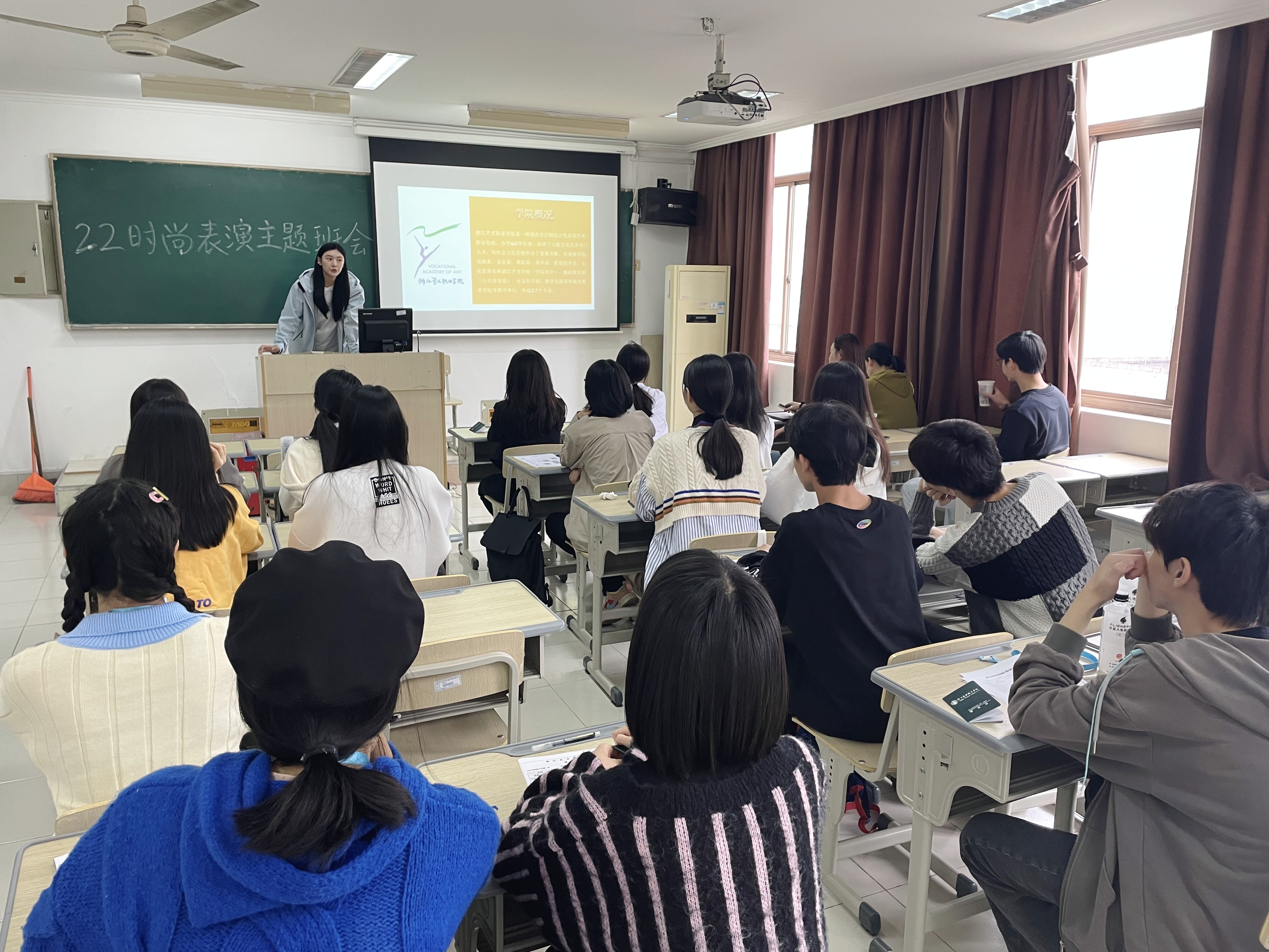 全体新生观看浙江艺术职业学院宣传片,了解学校的发展历程、办学理念、办学成果、杰出师友等,进一步激发对学校的归属感、认同感和自豪感。