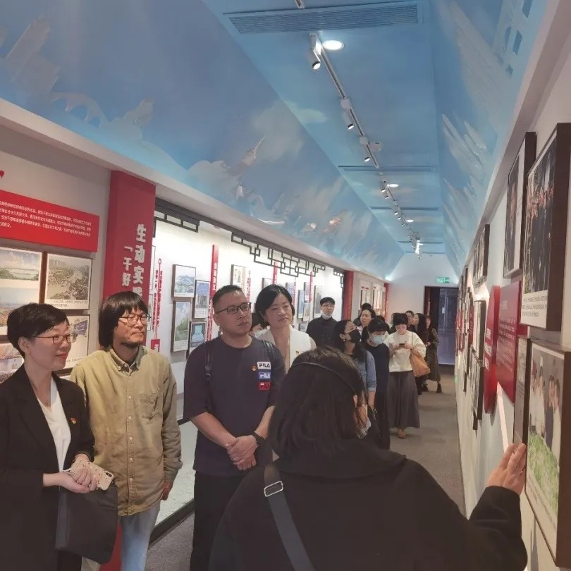 纪念馆共分为“潮起钱塘”“星火钱塘”“奔腾钱塘”“今日钱塘”四个部分展示。设计学院一行在讲解员的带领下重温了中共杭州小组从成立、发展到壮大的全过程,瞻仰了浙江党组织带领全省人民开拓创新,取得新民主主义革命和社会主义革命、建设、改革的伟大成就,了解了新时代中共浙江省委以“三个地”的使命担当,努力把浙江建设成为新时代全面展示中国特色社会主义制度优越性的重要窗口的奋斗历程。