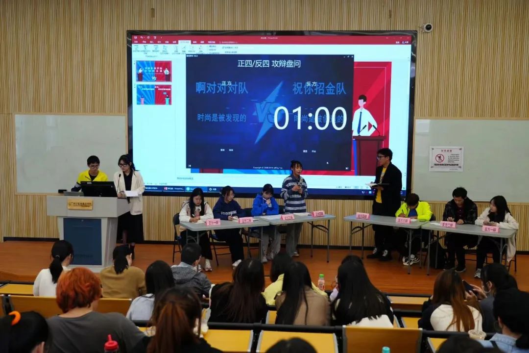 在第一场辩论中,“啊对对对”队运用乞丐装流行的事例开篇立论,“祝你招财”队通过列举巴黎世家、香奈儿等时尚品牌进行有力回击。“祝你招财”队的二辩在质询过程中沉着冷静、言简意赅,占据赛场主导性,使比赛氛围迅速升温。