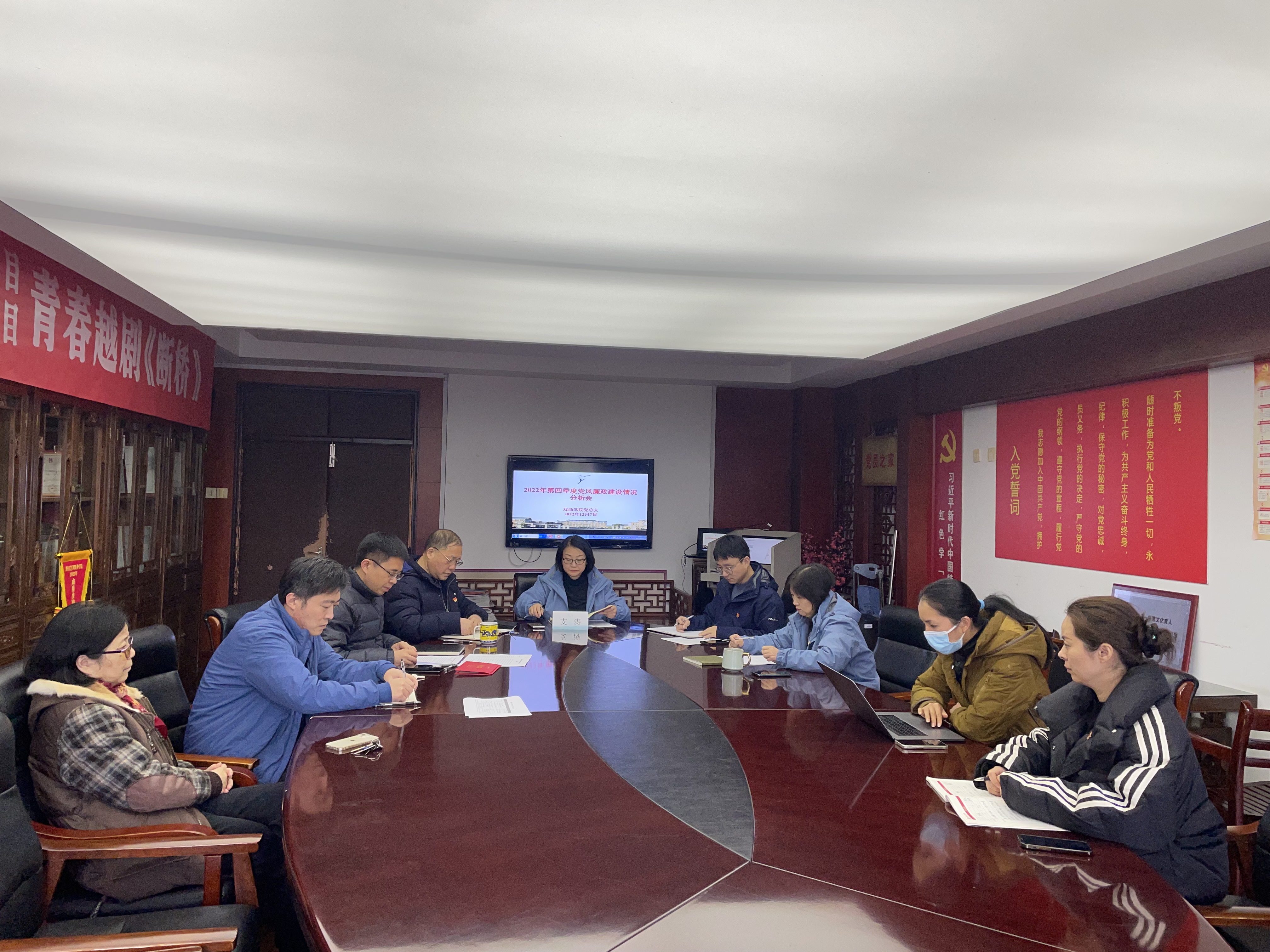 12月6日,戏曲学院召开第四季度党风廉政建设情况分析会,对全年党风廉政建设工作取得的成效进行了梳理,对存在的问题进行了查摆和分析,提出了相应的整改措施。校党委委员、副校长支涛,戏曲学院领导班子成员,党风廉政建设监督员、党支部书记、教研室主任代表等参加。