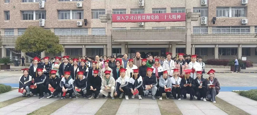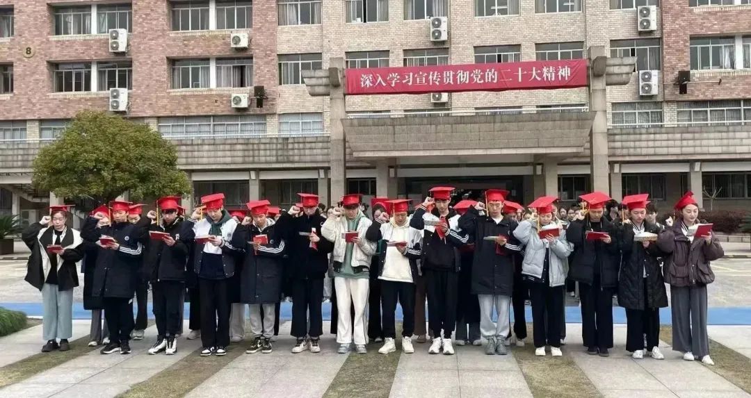 在庄严的国歌声中,五星红旗冉冉升起,老师们为34名同学佩戴上成人帽并颁发《中华人民共和国宪法》。全体同学头戴成人帽,手持宪法,面向国旗庄严宣誓:“我将胸怀远大理想,承载浙艺精神,立志成为担当民族复兴大任的时代新人,为中华民族的伟大复兴奋斗终身。”