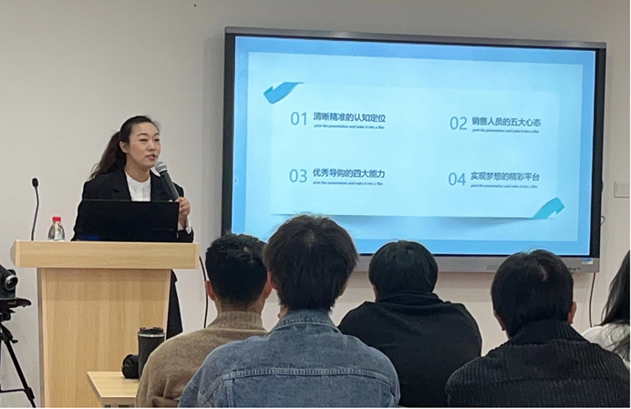 设计学院第三季“哲·艺”学术月通过专题讲座、专业研讨会、走访博物馆、校企合作签约等活动,进一步开阔师生知识眼界,营造良好学术氛围,推动专业建设。3月20日,设计学院邀请了杭州携众服饰有限公司培训负责人马丹丹来学校作《走进新形势下的服装门店》专题讲座,杭州携众服饰有限公司培训助理黄娟,服装与服饰设计教研室主任巴蕾及部分专业教师,21级服装与服饰设计专业同学参加了此次讲座。