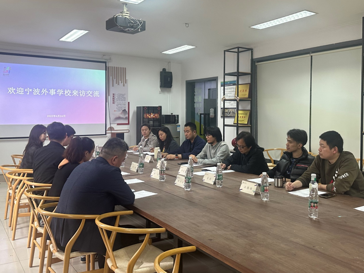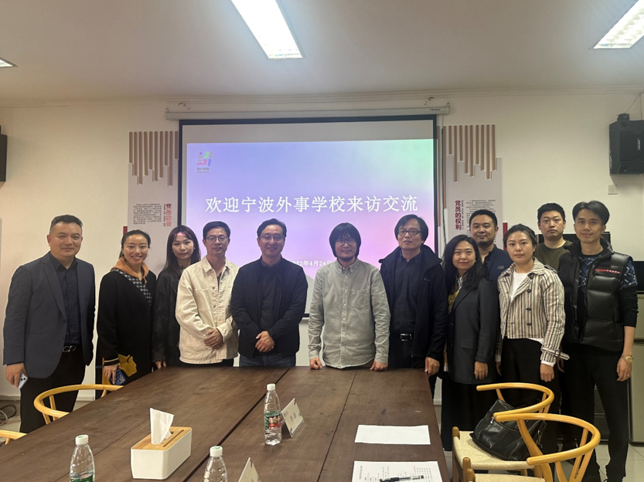 为促进校际交流,加强校际教学教研互动,近日,宁波外事学校副校长陈健,艺术设计专业主任卢曙光,艺术表演专业负责人罗洁、专业教师李炊遥,宁波歌舞团经理钟宇洋一行来访我院进行参观交流。设计学院常务副院长李昌国及相关教师参加座谈。