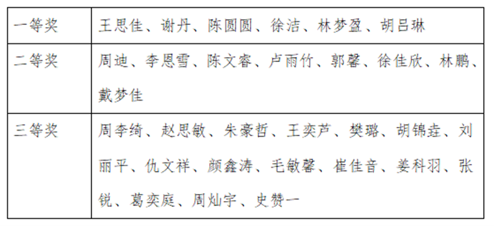 比赛获奖名单