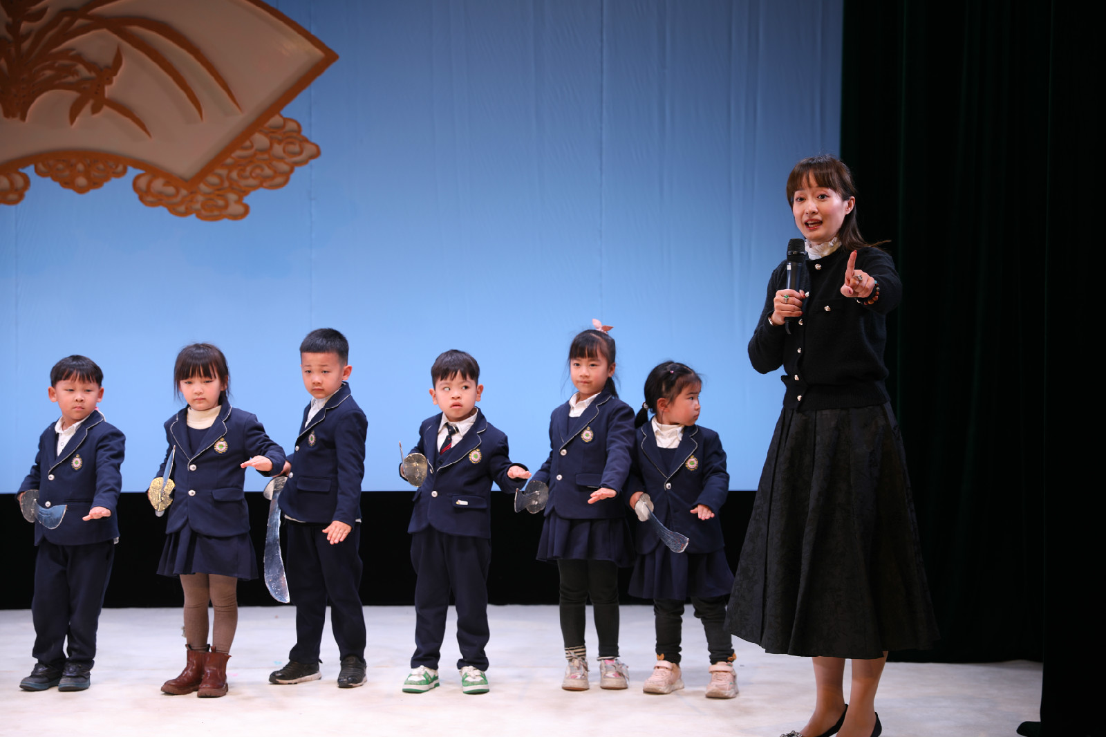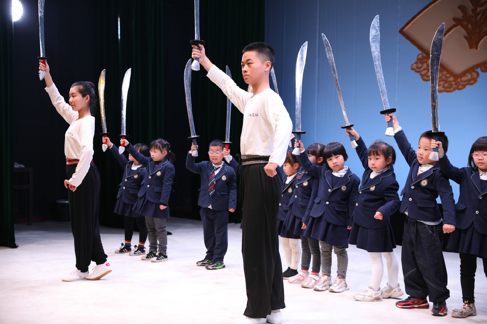 在表演的尾声,永昆班的小学员们邀请了观看演出的小朋友和中小学生来进行互动,让他们能身临其境的感受戏曲的魅力,拿起刀、马鞭的他们变得容光焕发,站在台上的所有人都散发着无限的光芒。