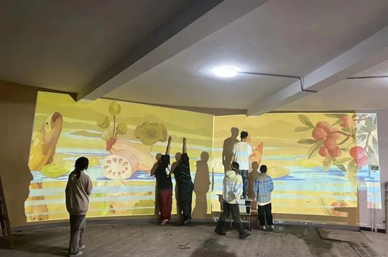 设计学子利用五一假期时间,积极投身于墙绘活动中,每一种颜色的调和,每一笔线条的绘制,看似轻松实则不易。迎着晨风,披着晚霞,同学们表现出了极大的创作热情,展现了坚韧不拔、无畏困难、吃苦耐劳、精益求精的专业素养和精神品质。