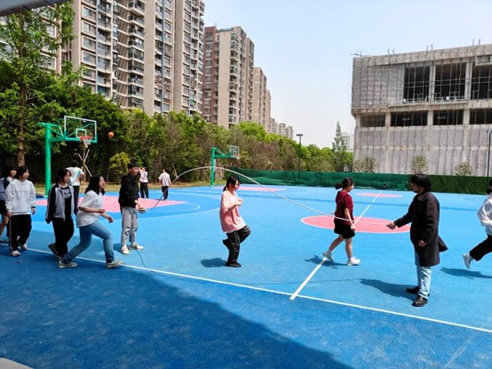 长绳联结起默契和友谊,跳跃展现青春与灵动,师生们以饱满的热情和精神状态投入到活动当中,共同挥洒着欢乐的汗水,享受运动后的惬意。
