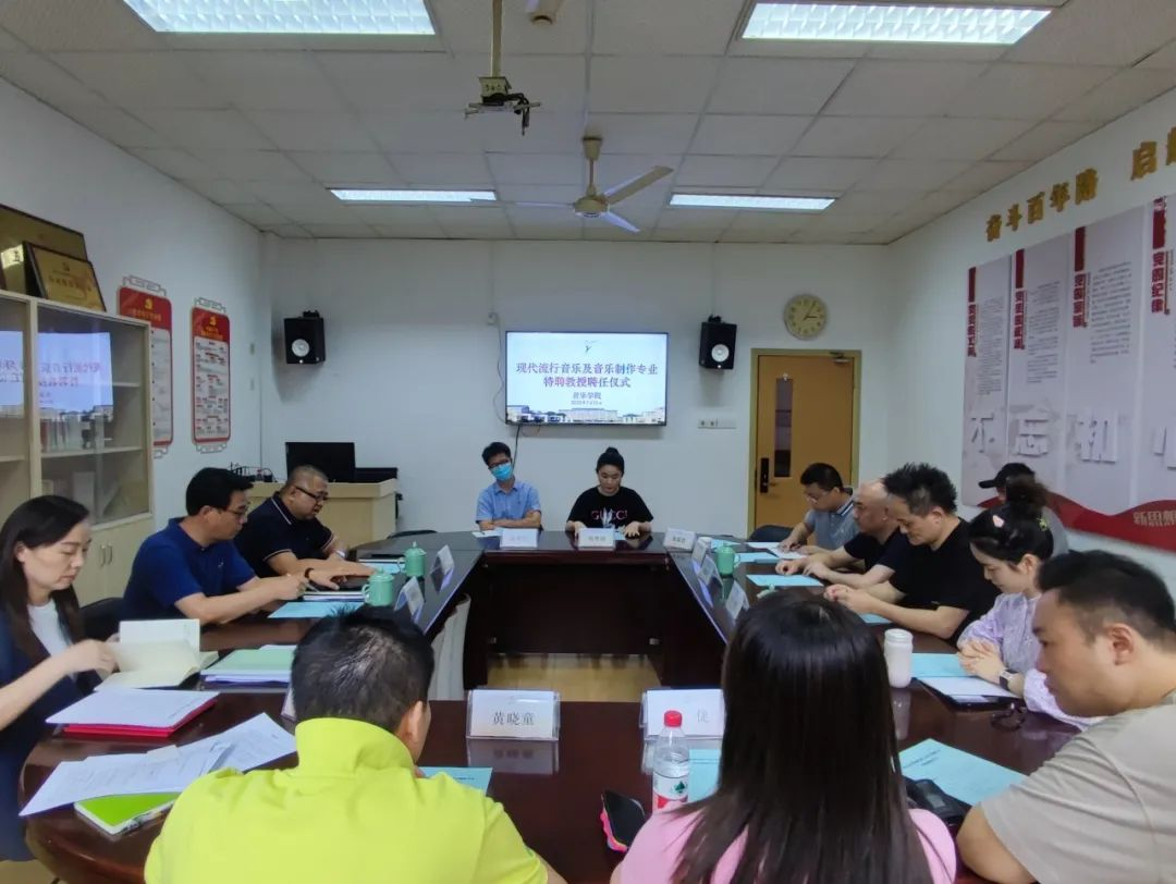 7月13日下午,音乐学院现代流行音乐及音乐制作专业特聘教授聘任仪式在3101会议室举行,聘任浙江音乐学院流行音乐系副主任王滔担任我院现代流行音乐专业特聘教授,聘任浙江音乐学院音乐工程系副教授姜超迁担任我院音乐制作专业特聘教授。音乐学院领导班子、办公室主任、流行及音乐制作相关教师代表参加聘任仪式,潘骅副院长主持仪式。