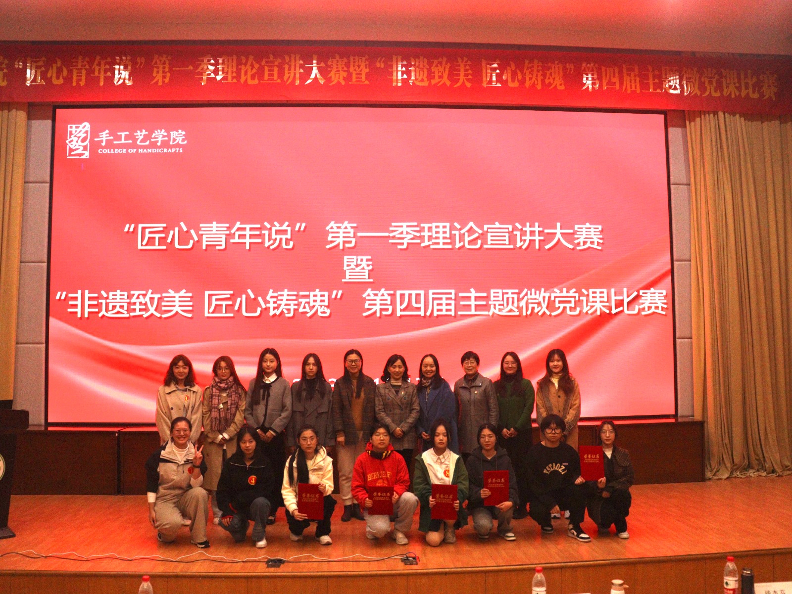 为学习贯彻习近平总书记对宣传思想文化工作重要指示精神、习近平总书记考察浙江重要讲话精神,保护好、传承好、利用好非物质文化遗产,坚定文化自信自强,11月13日晚,手工艺学院在图信报告厅举办“匠心青年说”第一季师生理论宣讲大赛暨“非遗致美 匠心铸魂”第四届主题微党课比赛,来自4个专业的13位手工艺学子为大家呈现了一场青春洋溢又匠心独具的宣讲盛宴。
