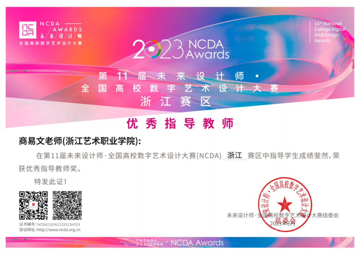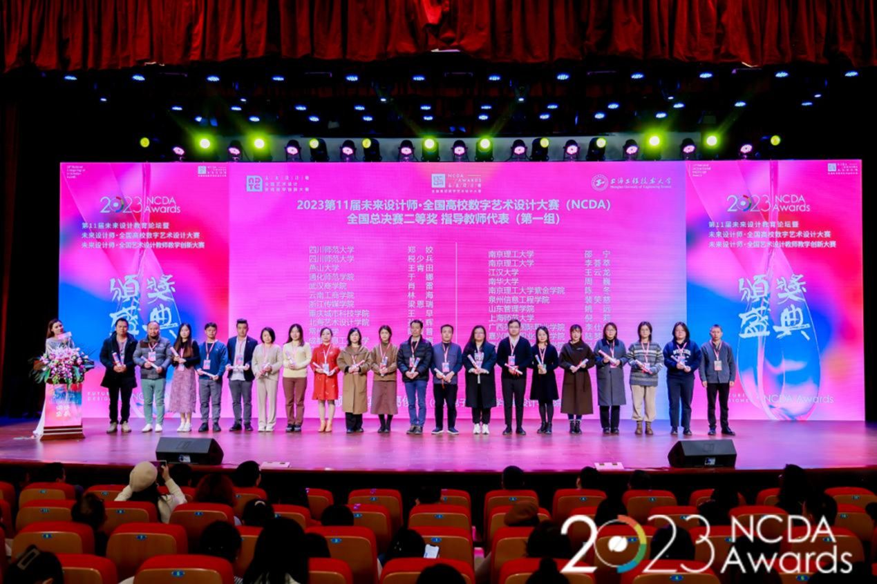 11月30至12月2日,第十一届未来设计教育论坛暨2023第十一届未来设计师·全国高校数字艺术设计大赛 (NCDA) 颁奖典礼在上海举办。广告艺术设计专业教师刘俊、商易文带领专业学生参加了颁奖典礼。