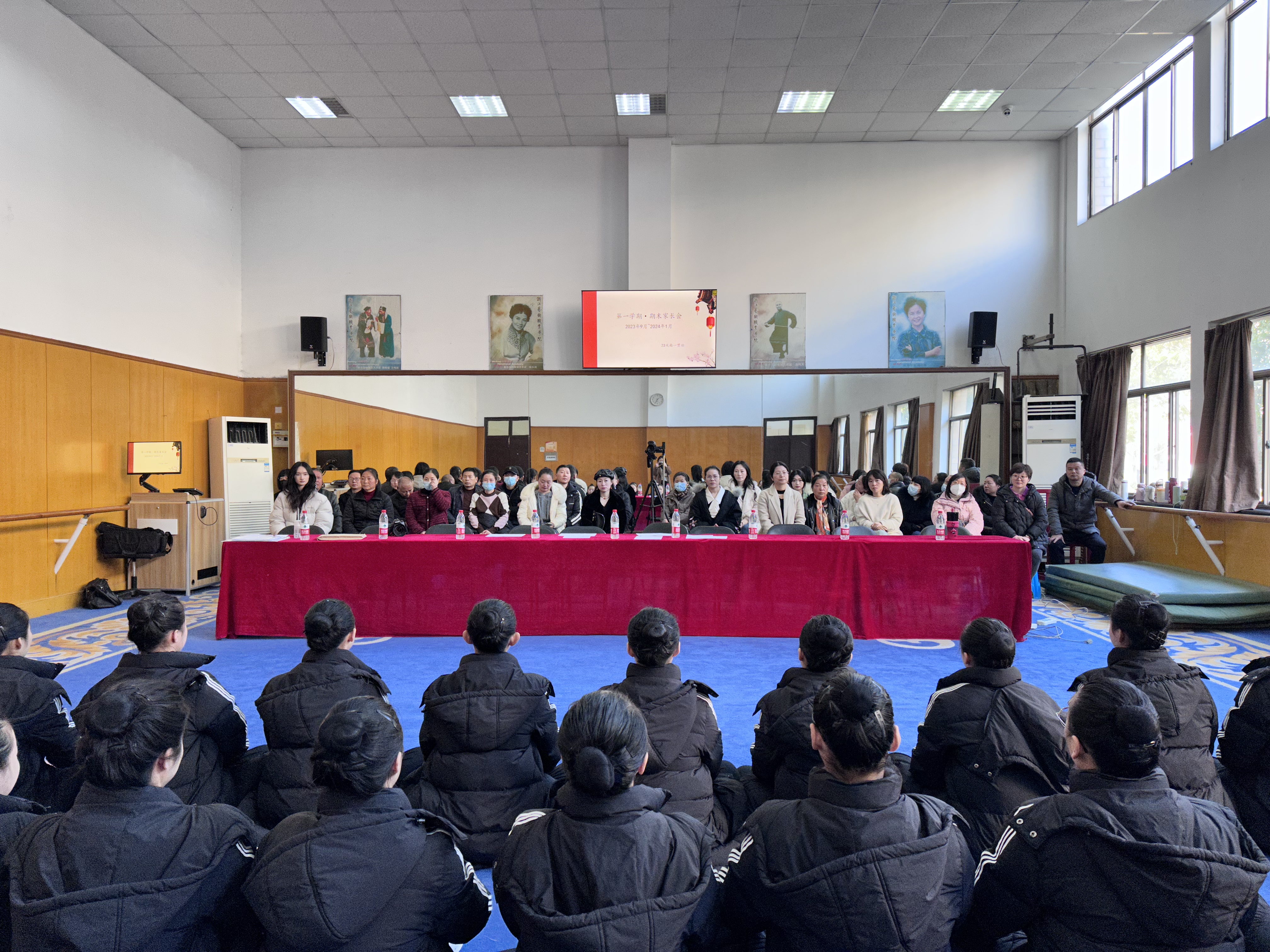 各班精心组织了家长看考,建立院团、家校多维度期末考评机制,并召开了家长会,进一步增进家校联动。戏曲学院班子领导、专任教师、班主任、辅导员与家长就学生日常学习状态、纪律卫生等方面开展面对面沟通,携手共促学生成长,同心共育时代新人。附中校长郑园全、学工部副部长顾斌、基础教学部教学主管王玉簪以及戏曲学院党政班子成员参加22越剧班家长见面会。会上就家长所关注的学生综合表现、学业成绩、专业发展、升学规划等情况分别进行了详细的分析和针对性的指导。