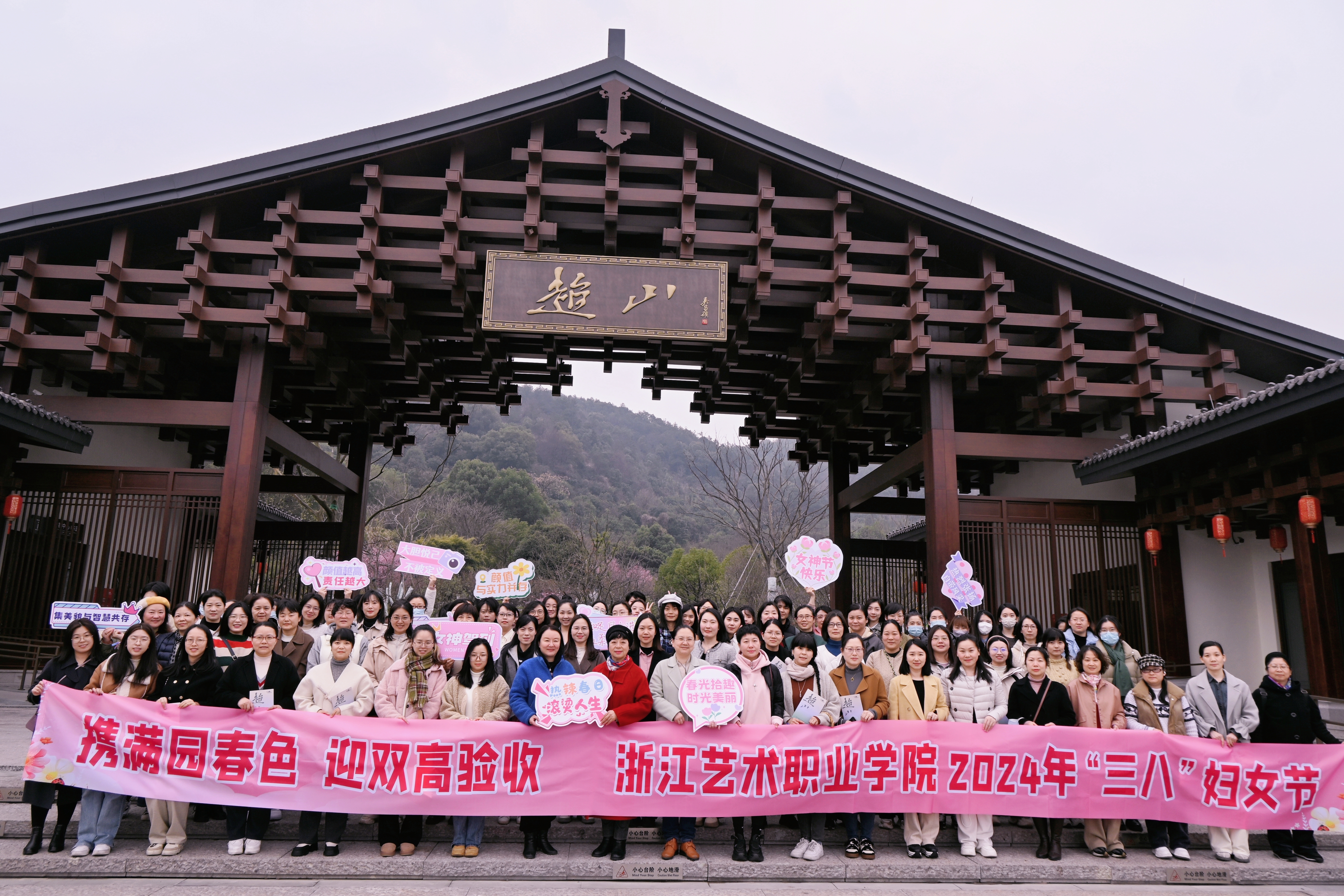三月江南梅子青,春游已过画船横。春暖花开,从古至今就有赏春踏青传统。3月14日,浙江艺术职业学院三八妇女节活动在超山风景名胜区举行,活动主题为“携满园春色,迎双高验收”,全校约200位女教职员工赏春踏青。
