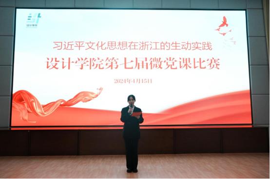 为深入学习贯彻习近平文化思想,丰富党课教育内容,创新党课教育形式,深化学生对习近平文化思想在浙江生动实践的认识,续写新时代浙江文化繁荣兴盛的新篇章,4月15日,设计学院“习近平文化思想在浙江的生动实践”第七届微党课比赛在学校图信报告厅举行。马克思主义学院副院长胡卓群,设计学院党总支书记汪琳,党总支副书记汪仕龙,副院长何佳玮,党总支委员、教工第二党支部书记贾娜娜,学生党支部书记龚林峰出席并担任评委。辅导员、学生党员、第43期党校学员、“正青春”青年理论学习小组成员、青年团员现场观摩学习。