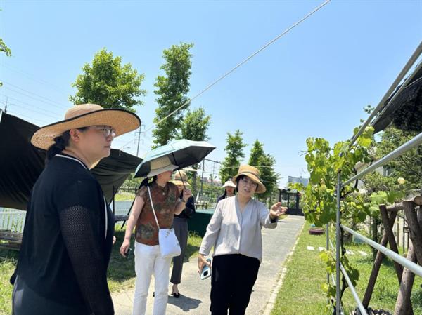 兰小红带领大家参观幼儿园环境和户外场地“南泥湾”,我院教师一行深切的感受到“向下扎根,走在泥地里,向上生长,醉在童话里”的顺应天性教育理念。