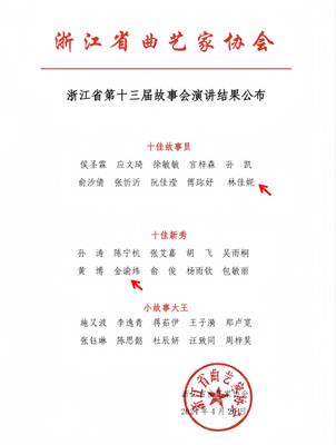 值得一提的是,本次“浙江省十佳故事员”中侯圣霖、应文琦、俞沙倩、傅珎妤四位选手均毕业于浙江艺术职业学院表演艺术专业。