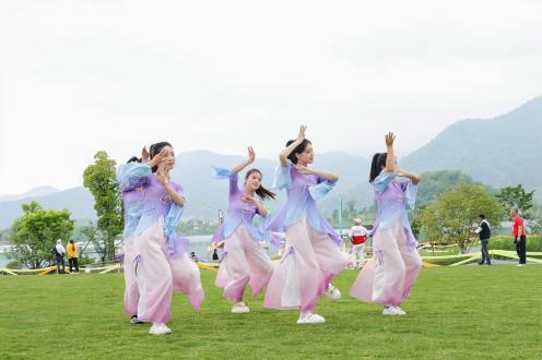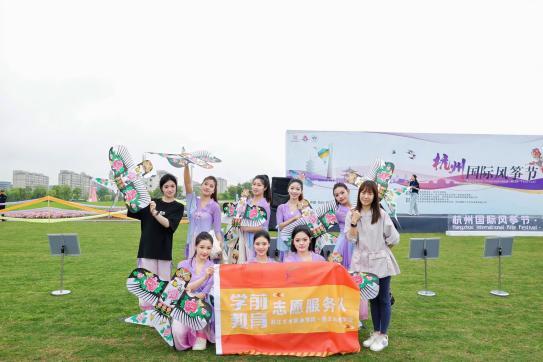 为增强学前教育专业学生校外实践能力,4月29日,学前教育专业艺术进阶(舞蹈方向)师生赴铜鉴湖参与校企合作项目之一的杭州市国际风筝节开幕式舞蹈演出。